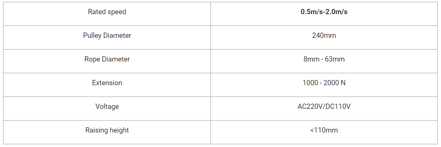 Thông số kỹ thuật của bộ chống vượt tốc thang máy